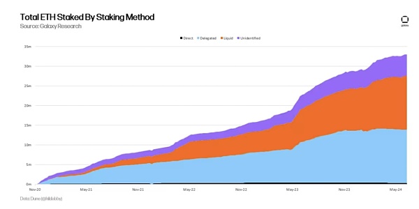 三种不同方法质押的以太坊总量