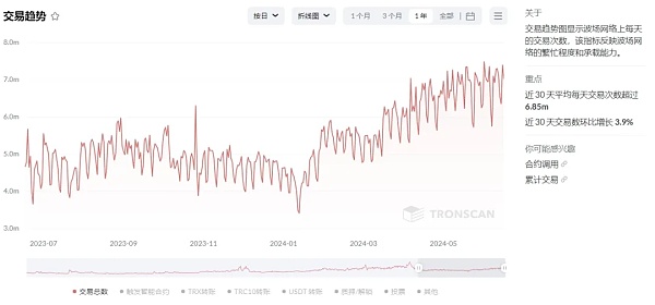 波场TRON近30日日均交易数超685万 环比增长3.9%