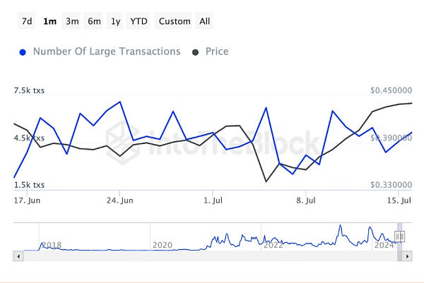 这种缺乏热情的情况在鲸鱼兴趣的波动和围绕 ADA 的交易活动中显而易见。