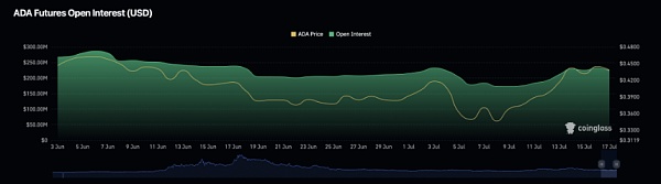 虽然ADA的未平仓合约略有增加,上涨了4%,达到2.3074亿美元,但未平仓合约量却下降了近30%。