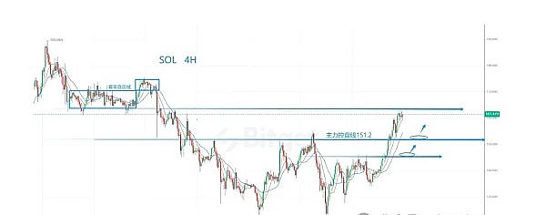 SOL在小时线上表现生长顶背离的趋势,且在163上方有两个日线级别的放量套牢盘,怎么看现在都不是买入的时候,所以个人建议主要以逢高抛出的思路为主,不要去追。和大盘的思路一样,后续大方向看涨,但主要是做回调后的行情,第一支撑位154.5~151.2,第二支撑位148~145。
