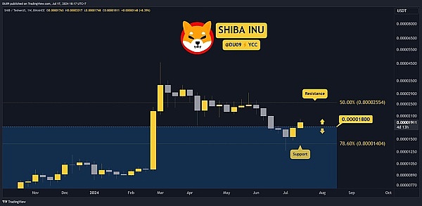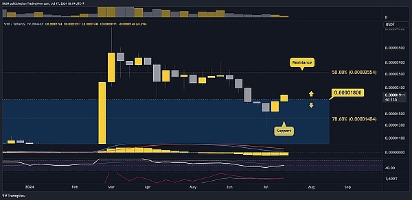 与大多数市场一样,SHIB 从 0.000014 美元的支撑位强势反弹,并上涨至当前支撑位 0.000018 美元上方。如果这一关键水平得以守住,SHIB 买家的下一个目标可能是 0.000025 美元。
