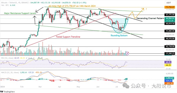 考虑到当前的市场情绪,如果多头保持势头,比特币可能会突破关键阻力位并测试 67,775 美元的水平。如果保持在这一水平之上,预计最大的加密货币将在未来几周内升至之前的高点 73,750 美元。