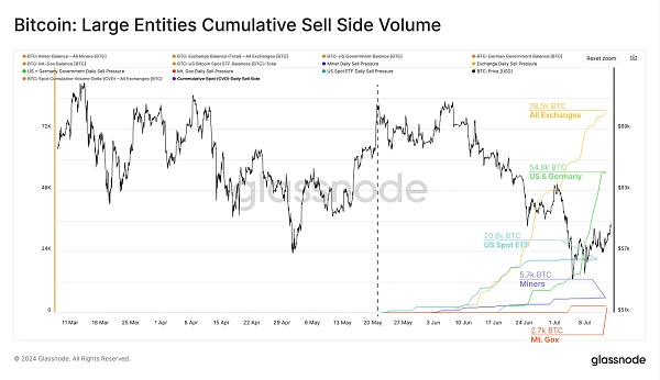 研究机构 Glassnode 近日发布了一份题为《Surviving the Sell-Off》的报告,这份报告数据显示了一些有趣的情况。在过去的一个月里,首先是 ETF 持续流出导致大盘下行,继而产生恐慌情绪,德国政府抛售比特币的行为实际上更多在市场情绪上影响了比特币价格,抛压行为本身对比特币价格影响没有社区想象的那么大。