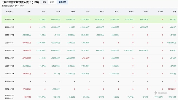 前日,美国现货比特币 11 只基金累计净流入 6532 枚比特币,价值共计约 4.225 亿美元,为 6 月 5 日以来的最高单日净流入量,延续了连续 11 天的上涨势头。这些基金在 3 天时间里吸引了超过 10 亿美元的资金。