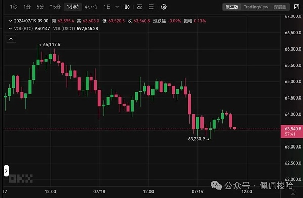 撰稿当下又从回弹中再度下跌,现报63,540 美元、近24 小时下跌1.38%。