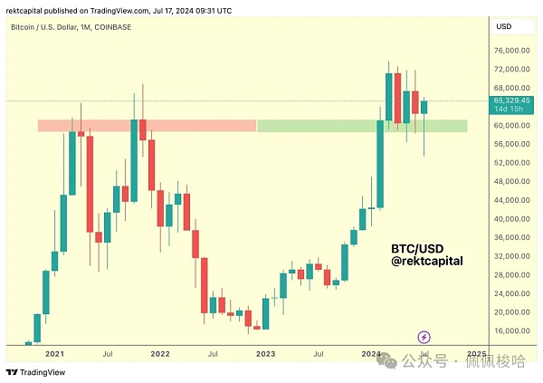 分析师Rekt Capital写道:“比特币尚未准备好成功重新测试约65000美元的水平作为新的支撑位。