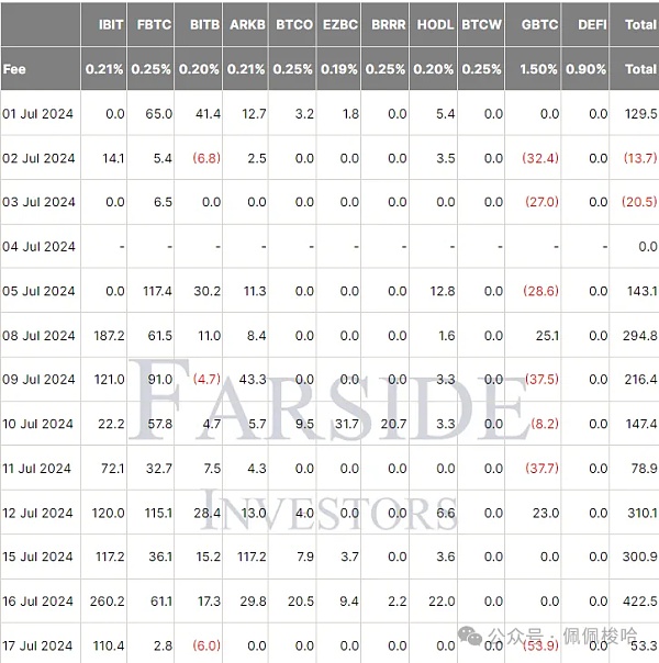 根据Farside Investors数据,美国比特币现货ETF的单日流入量创下6月初以来的最高水平,7月16日共流入价值4.22亿美元的比特币。