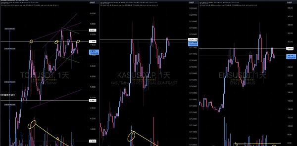 1,前期强势的标的现在软了,比如TON KAS ENS