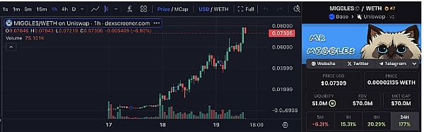 另一只猫猫主题MEME走红 Base生态代币MIGGLES最高超900倍