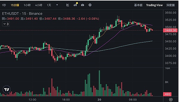 截稿前现报3,488 美元,近24 小时上涨2.21%。