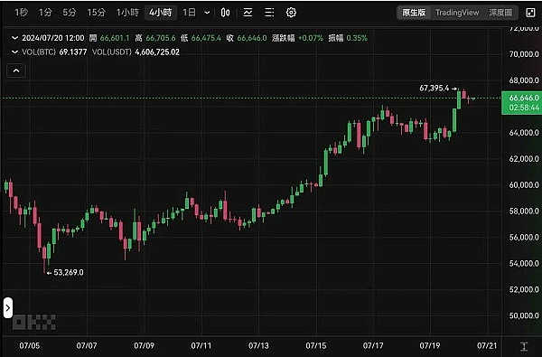 不过同时间内,比特币价格从7 月5 日以来虽然是震荡上涨没错,但却显的有一些乏力,没有很顺畅拉涨的感觉。本周持续在6.5 万震荡多时之后,才成功站上6.6 万美元,影响比特币买盘乏力的可能因素有哪些?