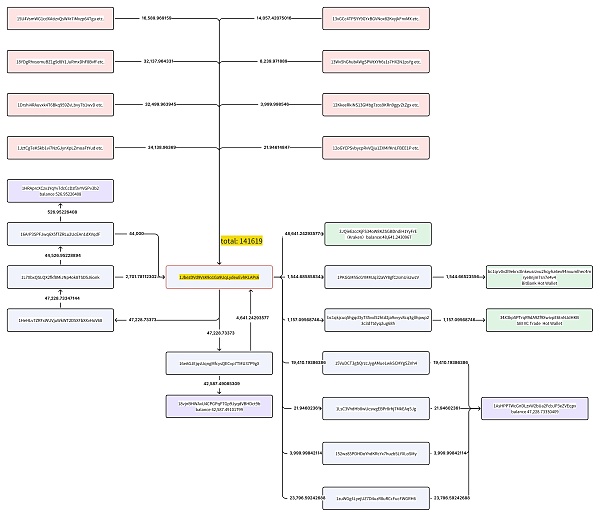search.ichainfo.com 对 Mt.Gox 交易所的转出资金流向进行了跟踪分析,通过资金流梳理发现,Mt.Gox 钱包中的资金主要流入了六个地址当中,其中有四个地址的后续资金变动,需要投资者格外关注。