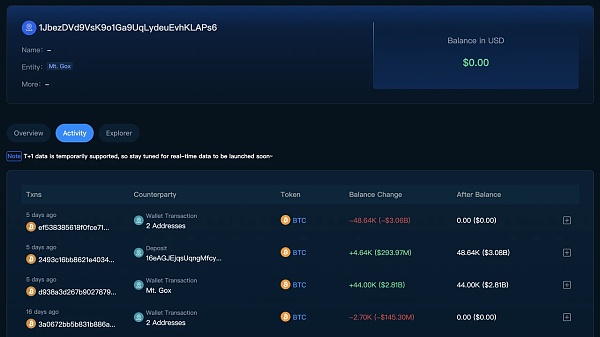18vjnBHWAxU4CPGPqF7Gp9JyqdVBHDct9b 为 Mt.Gox 冷钱包地址,目前持有 42,587 BTC,该地址资金的转出需要密切关注。