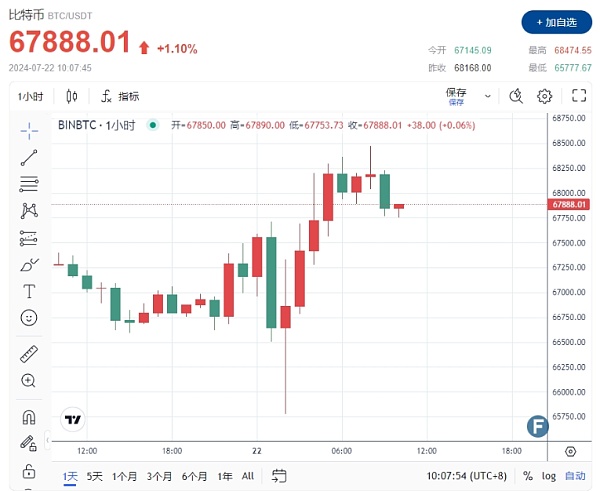 周一(7月22日),比特币摆脱回落行情,多头冲高触及68474美元。美国总统拜登正式宣布,退出11月总统大选,提振了对加密货币友好的共和党总统候选人特朗普(Donald Trump)胜选定价。美国7个州联合挑战加密货币过度监管,华尔街证实5家以太币现货ETF本周正式交易。