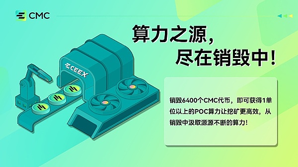 简单说,销毁挖矿就是定期销毁一部分CMC,减少供应,稳定市场。而当币价下跌时,市场会自动购买并销毁CMC,保持供需平衡,防止恐慌性抛售。用这些方法,CMC的供应量得到了有效调节,市场也跟着稳定了。