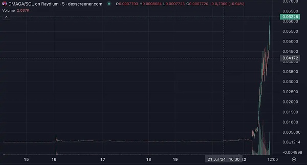 有马斯克「带单」,DMAGA 在凌晨开启暴涨,数小时内涨幅超 50 倍,截至撰稿时市值已经突破 6000 万美元。