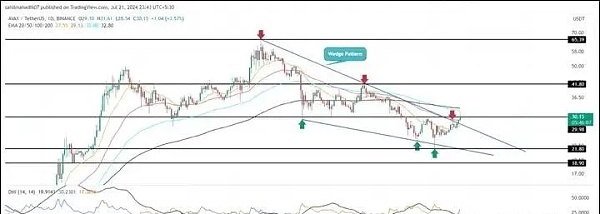 Avalanche 的价格分析显示,市场出现大幅上涨,突破了代表两个月调整的下降楔形模式。