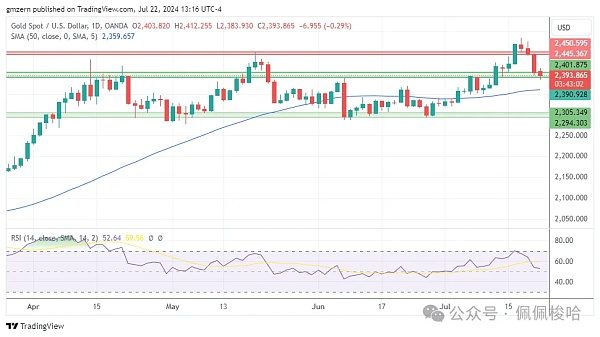 目前,黄金正试图跌破2390-2400美元的支撑位。如果这一尝试成功,它将走向下一个支撑位2295-2305美元。
