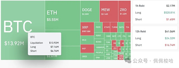 CoinGlass数据显示,过去12小时内,超过716万美元的比特币多头仓位被清算。整个加密市场的总清算额为4100万美元,其中2330万美元为多头清算。