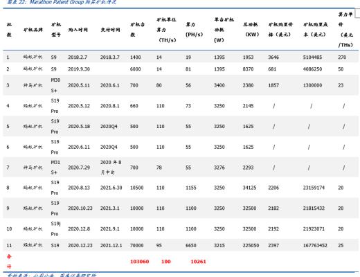 部分公司从生产商如比特大陆直接购买,不仅价格相对较高,而且到付部署时间也较迟。Marathon Patent Group在比特大陆订购的1.7亿美元矿机需要在2021年12月才能交付完成。