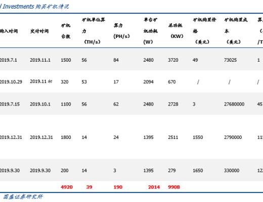 2019年7月,收购4475台比特币矿机,挖矿能力从57 PH/s翻倍至大约112 PH/s。