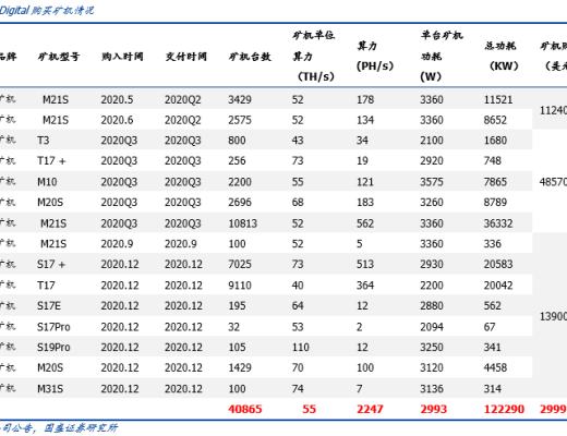 目前,公司算力为787PH/s,功率为31MW。到2021年6月,总挖矿能力将达到1685PH/s,公司已经购买实现该目标所需的10000台机器(部分已提前交付),有望在2月至6月之间分批交付。