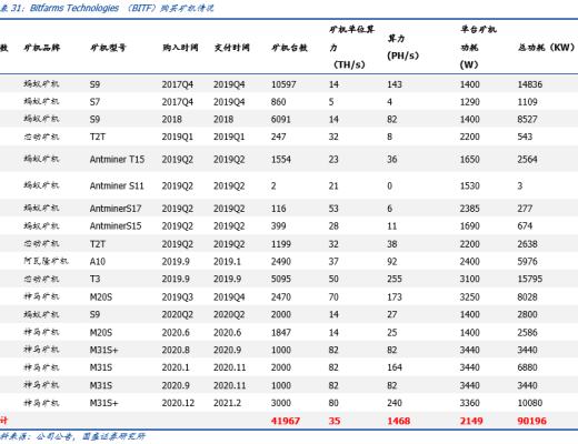 在我们统计的数据中,2020年,部分挖矿公司购买二手矿机或从第三方渠道购买矿机。我们认为,主要原因还是价格和到付部署时间。二手矿机不仅价格相对较低,而且多是打包出售,不需要生产周期,安装部署时间短,能更早的赶上这波上涨行情,创造收益,是相对理性的策略。