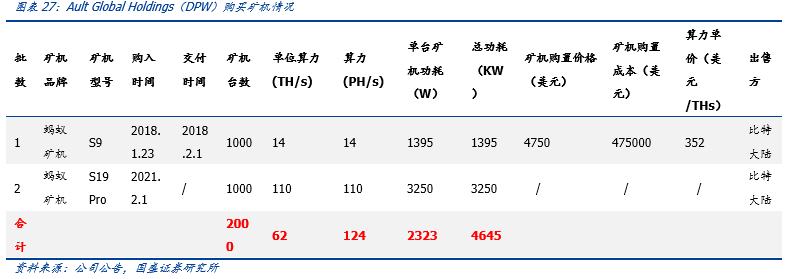 “总算力/总功耗”指标则反映出公司所购矿机的性能,其值越大,则同等功耗水平下,算力越高。此项数据披露并不完整,据已有数据可以看出,Ault Global Holdings的矿机性能较好。
