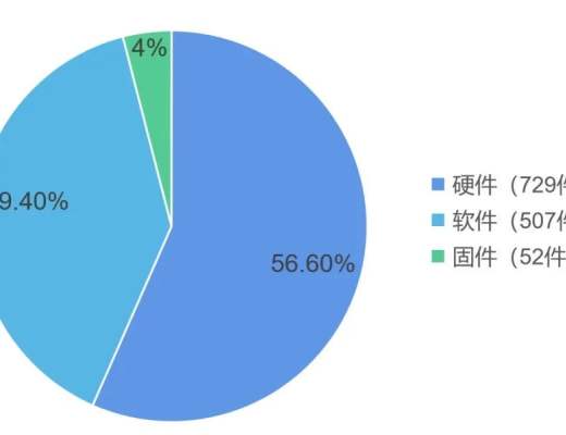 从NIST官方网站上查询到截止到2021年6月底,共有3959款产品获得了FIPS140-1或FIPS140-2的不同安全级别认证,其中1288件在有效状态,硬件形态占比56.6%,软件形态占比39.4%,两种形态的密码产品发展比较均衡,软硬结合,从而更好发挥安全产品的防护作用,软件密码产品灵活满足多种应用场景,包括云端、移动端、IoT等应用场景密码的使用需求。值得一提的是,国外市场具有软件固件产品的厂商占比超过50%,FIPS密码模块产品定级情况中,软件产品也能通过较高安全级别,有若干纯软件密码产品通过了二级认证。通过二级认证的软件产品类型包含密码应用安全中间件产品、操作系统内核密码模块、网络设备软件密码模块等。