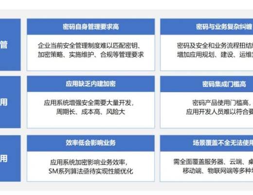 随着各行业信息技术的发展,互联网技术、云计算大数据技术、物联网技术等逐步应用到重要信息系统,在给系统带来便利的同时也带来了安全性挑战,为了增强系统的安全性,防止重要信息泄露,应对新的攻击手段,需要开展互联网密码体系建设、重要信息系统密码应用纵深体系建设、云计算大数据环境下隐私保护体系建设、物联网环境下轻量级密码应用技术体系建设等基于新技术的密码保障体系。目前,随着密码技术的发展以及技术演进,防护重点已经从网络转移到数据,但如何解决密码性能问题、密码安全性问题、密码合规性问题以及多场景适应性问题,都将成为一种挑战。
