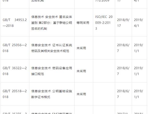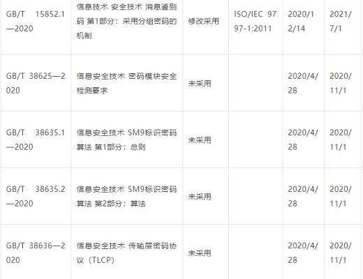 在商用密码标准体系建设方面,截至2021年3月15日,累计发布密码国家标准39项,密码行业标准115项。