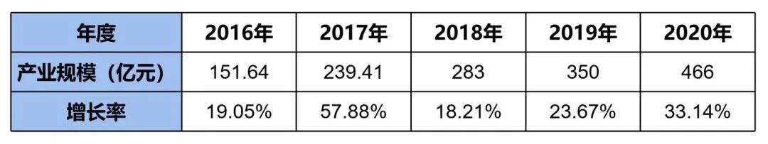 《2020-2021中国商用密码产业发展报告》显示,2016年到2020年,我国商用密码产业总体规模保持高增长率,2020年商用密码产业规模突破466亿元,年复合增长率超33%。