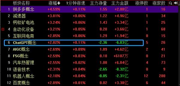 ChatGPT概念也已经开始资金流出,从板块榜单跌到了第六!人工智能也已经炒了许些日子,如果说等你知道这个概念火了,那么离结束也不远了。利好也有可能是游资出货的时机。值得警惕!