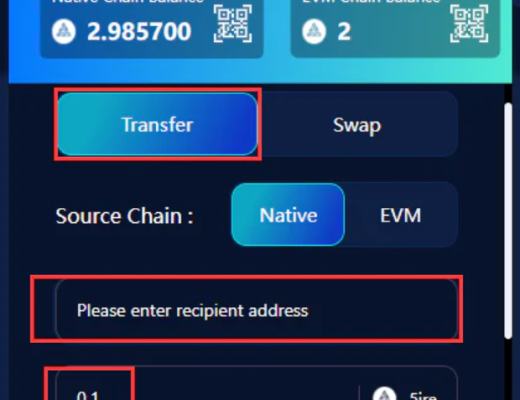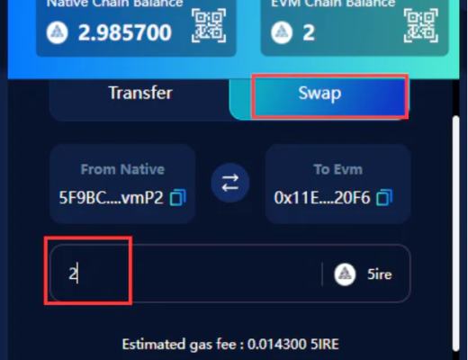 3:点击下面swap交互按钮,发送一些水从 你的native钱包 到 evm钱包