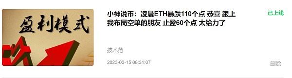 小神说币:恭喜 btc空单盈利400点 eth空单盈利60个点 太给力了