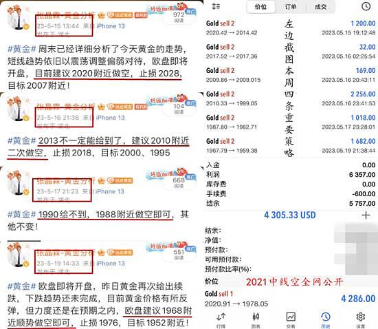 本周100%胜率收官:(由于本周给出策略较多,只截图重要策略,策略实时全网公布,绝非空穴来风,张晶霖希望大家能一探真伪)上周五黄金再次试探2000关口,但对于见顶张晶霖仍持怀疑态度,毕竟前期黄金在1970-2010宽幅震荡那么久后,最后还是选择上破。但周二黄金再次下破周一低点2007后,张晶霖就强调过,周二晚间行情下破2000关口概率极大,且下破后空头会加速(见顶),本周我们全部做空,周四没有公布思路,周五日内最高点空单收官。本周我们共操作6单(6胜),折算单手盈利32个点(单手利润3200美金)。每日的操作思路均全网提前公布。如果近期操作不如意的朋友也不用遗憾,黄金见顶迹象已经显现,我们中线布局(2021)已经开启,其中的利润空间仍不可估量,绝对又是一次资金多倍利润的机遇,张晶霖期待你的加入。