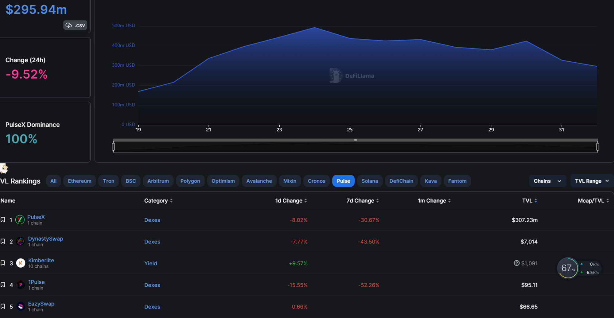 主网上线后TVL将近5亿美元,近期TVL下降至不到3亿,主要由dex项目PulseX提供,从生态的角度来看目前正在逐步完善,早期由meme项目带火了公链,大量资金通过跨链桥进场,目前逐步进入冷却期。