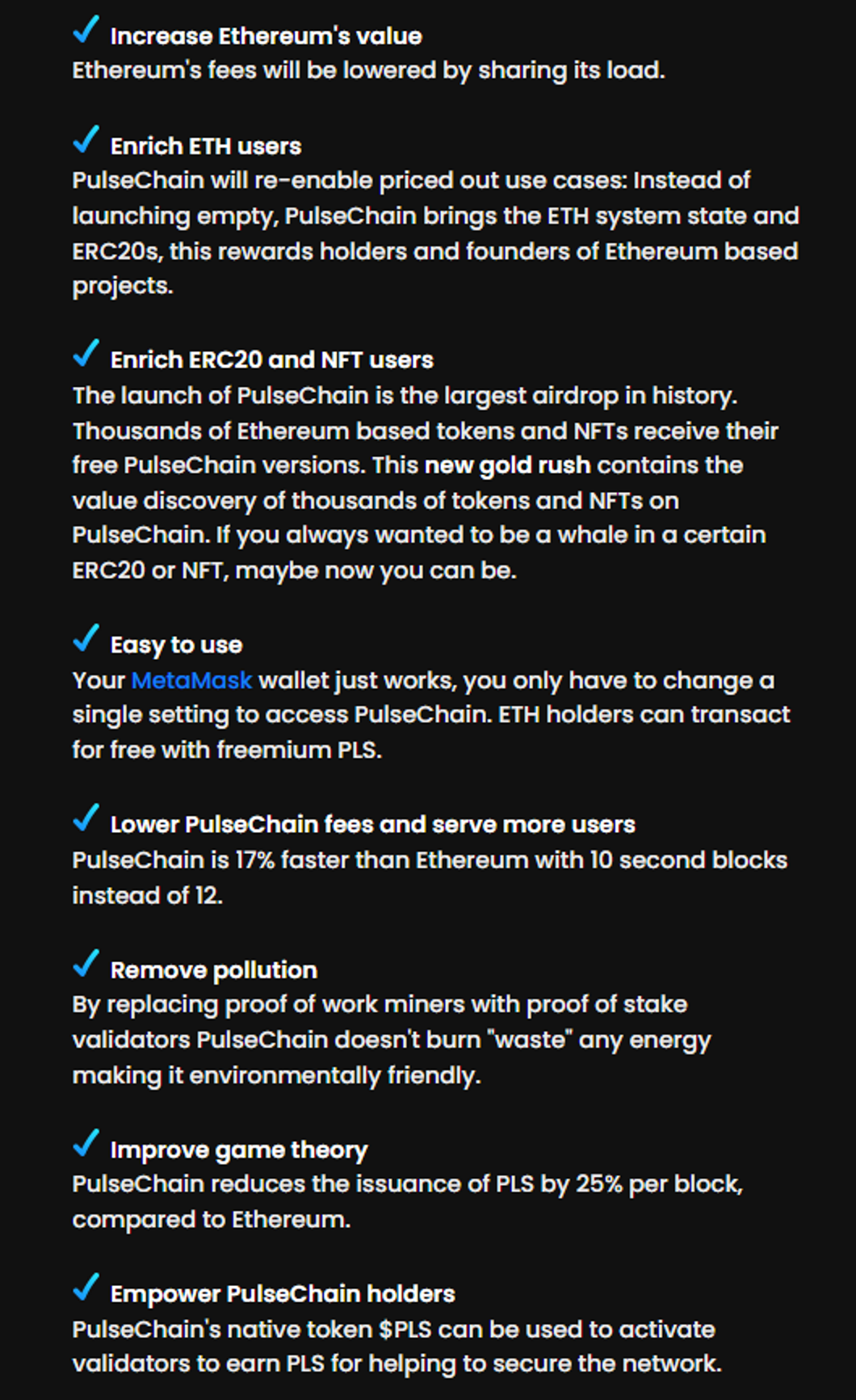 PulseChain的推出是历史上最大的一次空投。数以千计的基于以太坊的代币和 NFT 获得免费的 PulseChain 版本。这场新的淘金热包含了 PulseChain 上数千种代币和 NFT 的价值发现。