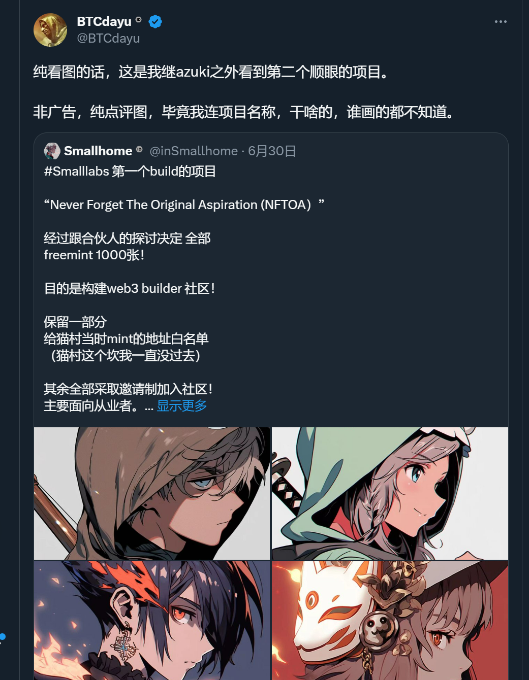 我刚刚刷推特,看见dayu老师又在推一个新的NFT项目,这画风我也不说,懂的都懂。