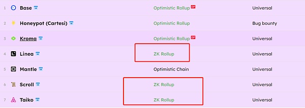 scroll采取的zk系技术,目前采取状zk技术的项目不在少数,四大天王中的两大天王,zksync,starknet都是采取的zk技术,目前主网测试中,zk系后起之秀也不在少数!polygon-zkevm,小狐狸母公司的linea,还有taiko等项目,scroll真可谓前有阻截,后有追兵的尴尬境界,每一个对手都是实力大拿,稍不注意就有可能被超越,个个技术实力一流,背景深厚,而且都还是不差钱的主,融资超过1-3亿美金的对手太多了,在各方面都不占优势的情况下,就要比拼团队的创新能力了,市场营销能力也将是他们角逐的主要战场,期待他能够杀出重围。