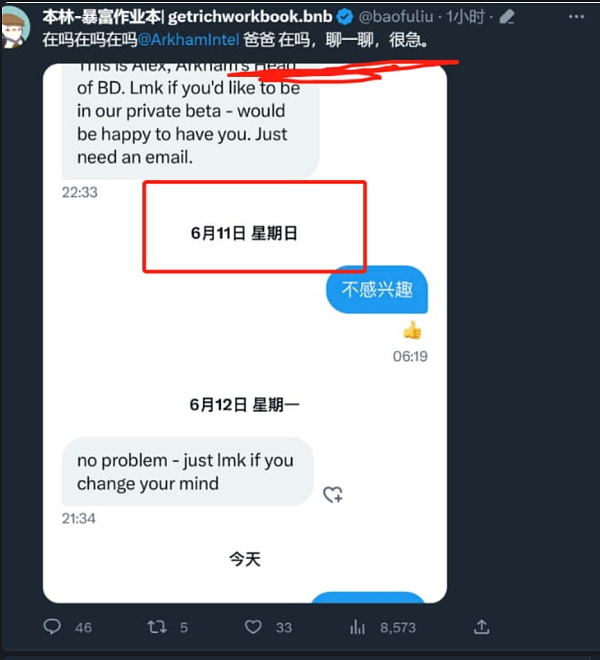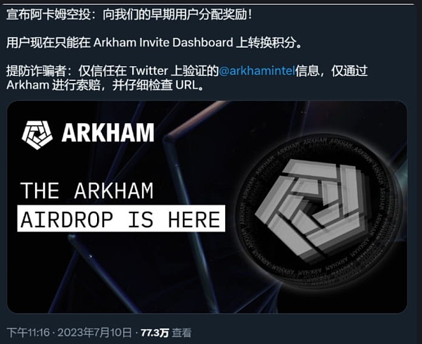 得从一个月前说起了,6月初arkm项目方私聊了不少KOL希望其能够推广项目,提高市场知名度,奈何KOL一个都没有看上,可能是对于项目没有仔细了解,错过了一次撸毛的机会,昨天纷纷开始补作业,奈何项目方早就快照了,白瞎了。