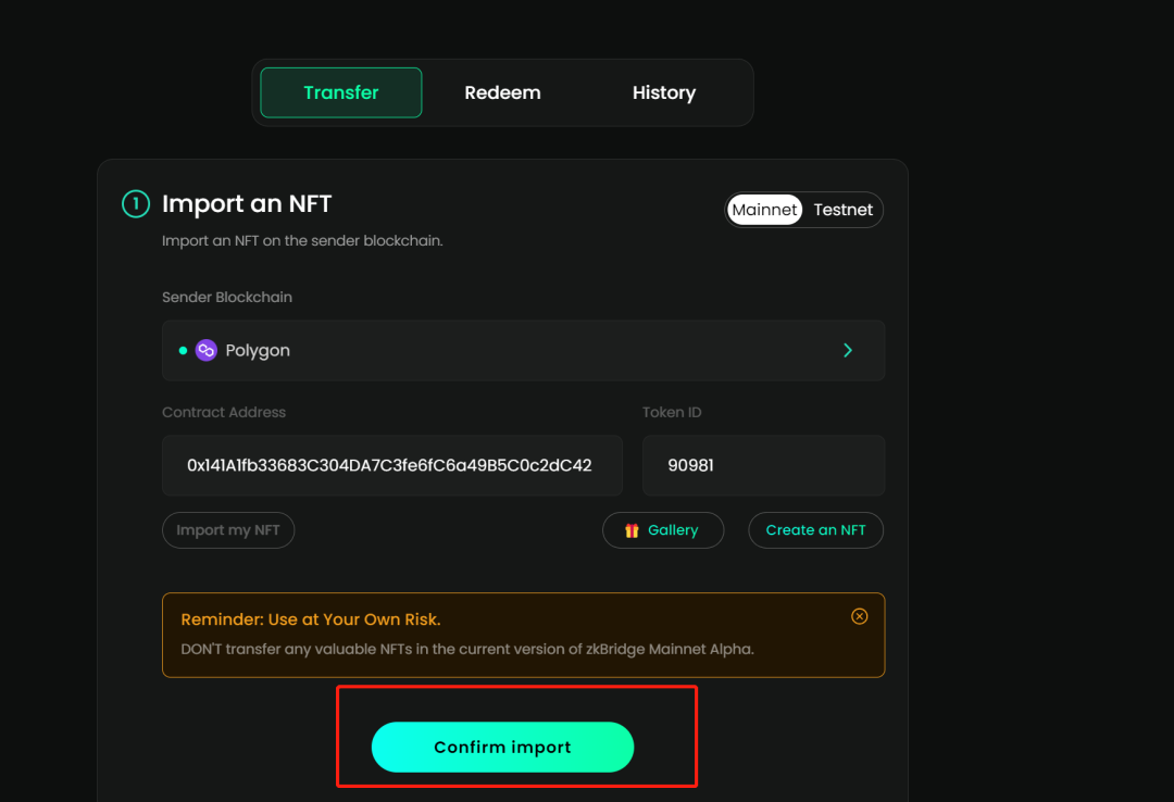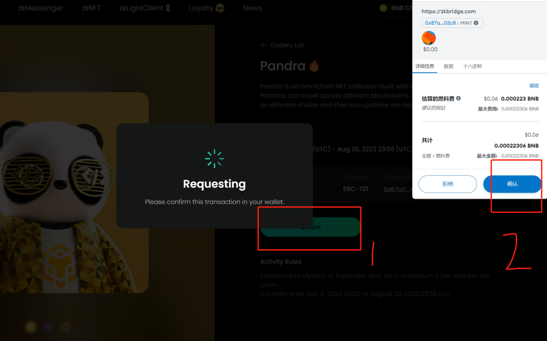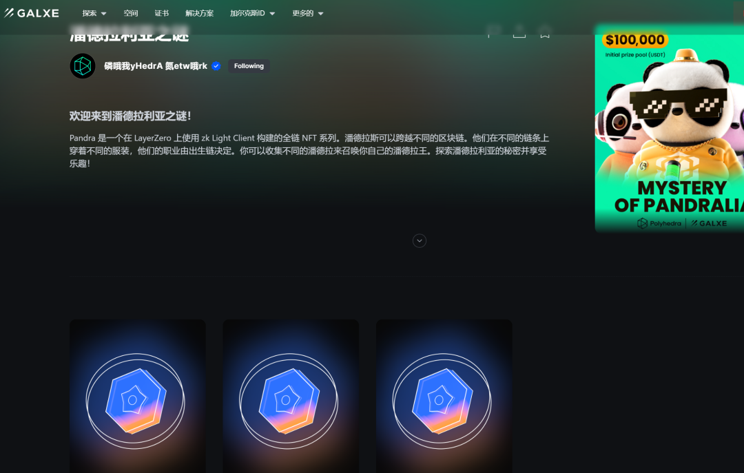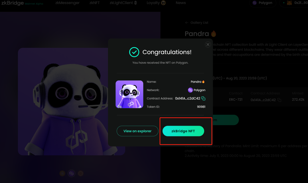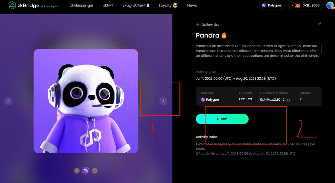 第一步打开网站https://zkbridge.com/gallery/pandra