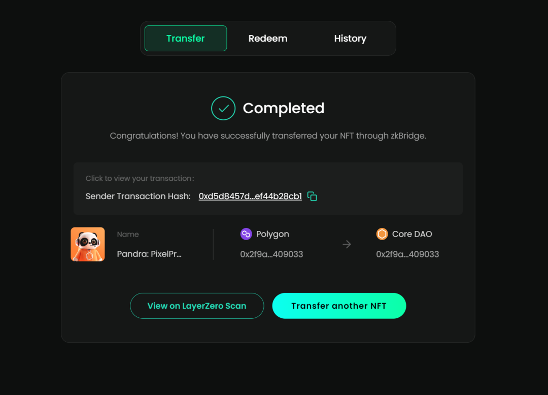 将“MelodyMaven”NFT 从 Core DAO 桥接到 BNB、Polygon 或 Combo。