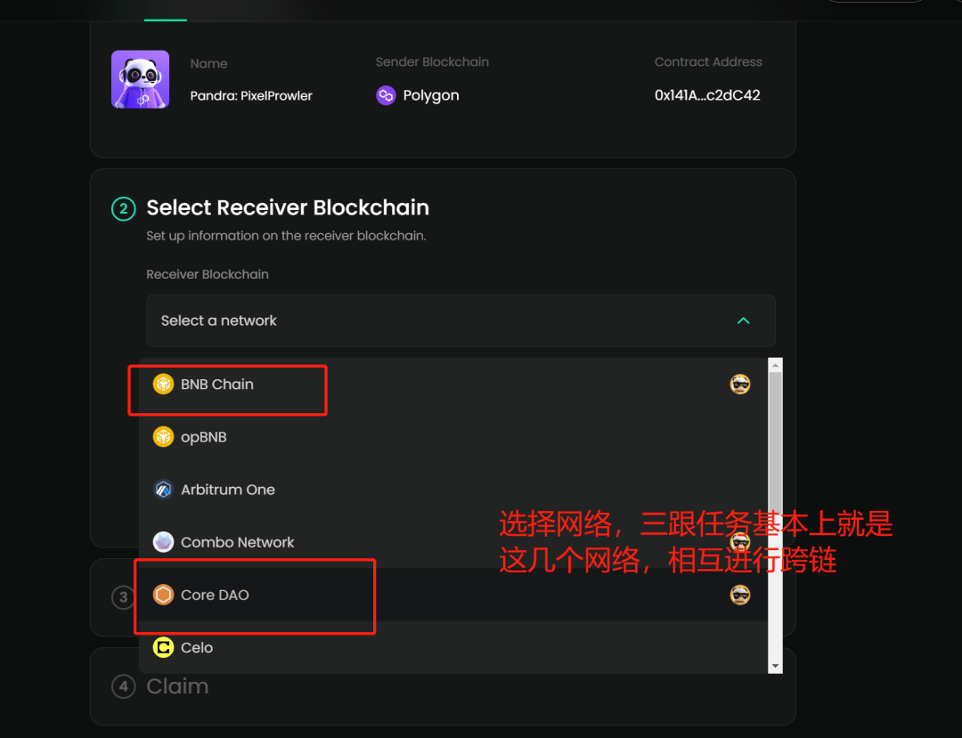 将“PixelProwler”NFT 从 Polygon 桥接到 BNB、Combo 或 Core DAO。