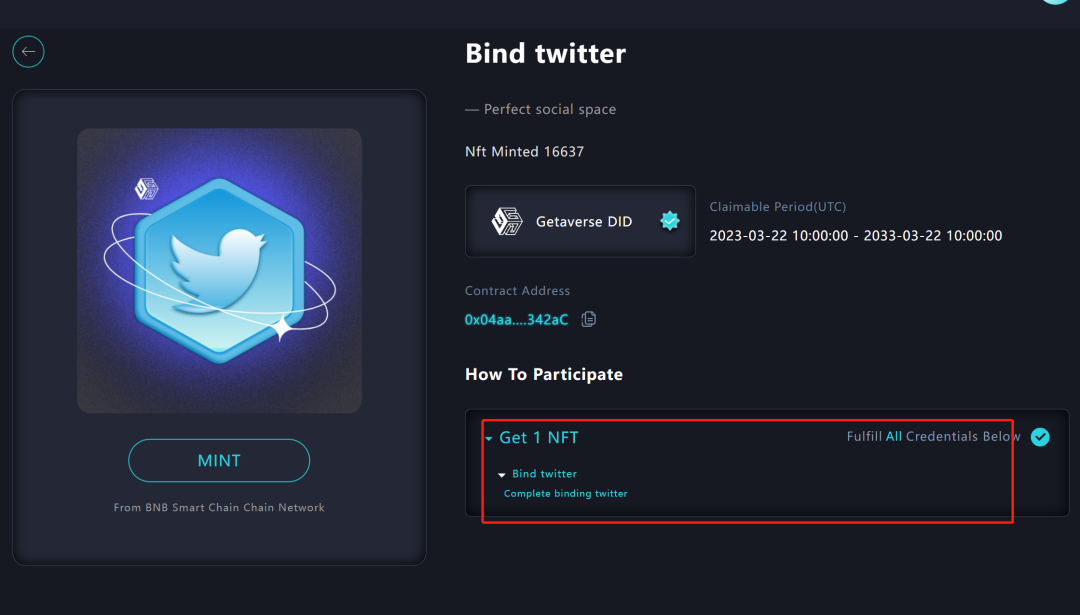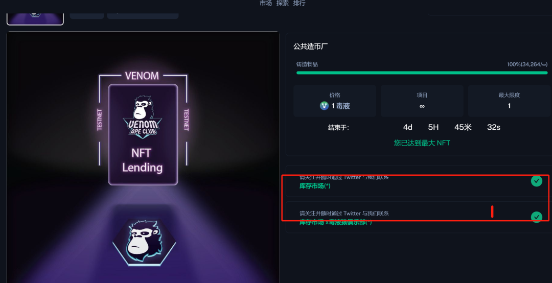 链接钱包,链接推特,验证完了,点击mint即可