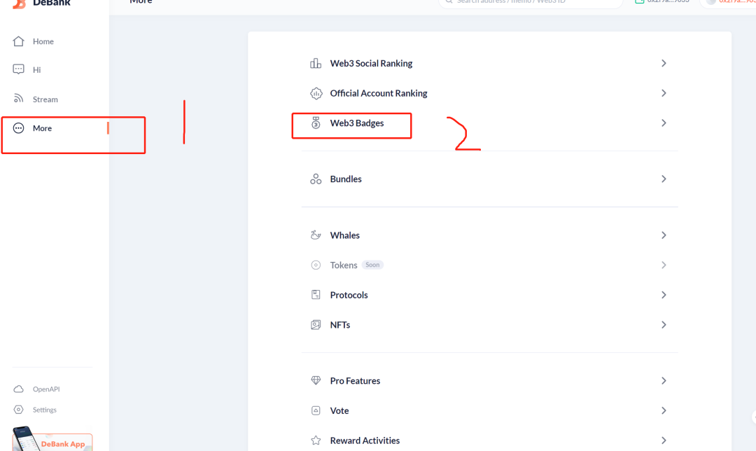 第二步领取徽章点击more然后再点击badges