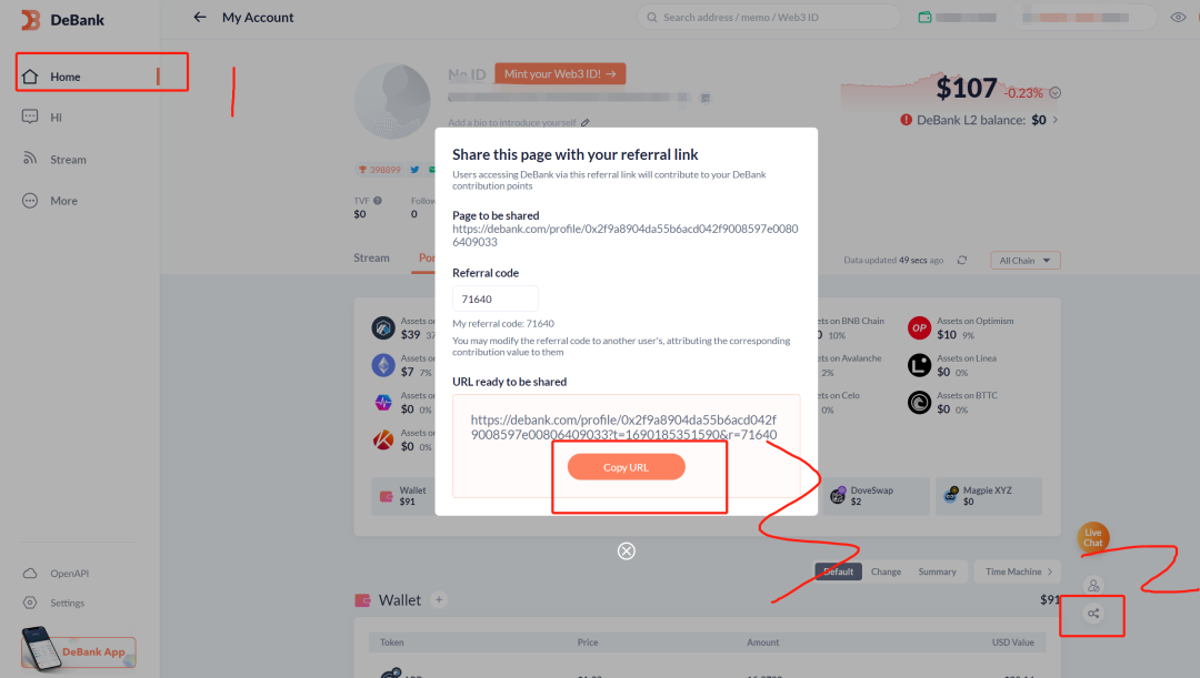 https://debank.com/profile/0x2f9a8904da55b6acd042f9008597e00806409033?t=1690185351590&r=71640