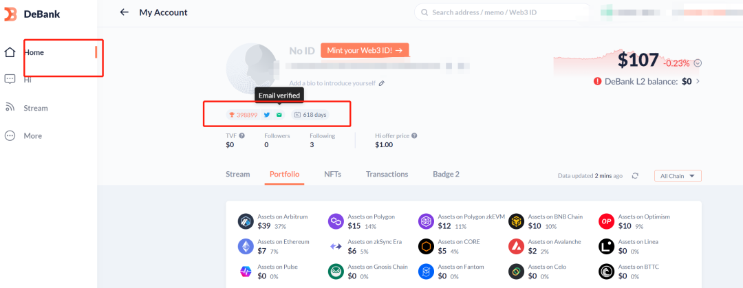 第一步打开网站https://debank.com/profile/0x2f9a8904da55b6acd042f9008597e00806409033?t=1690185351590&r=71640