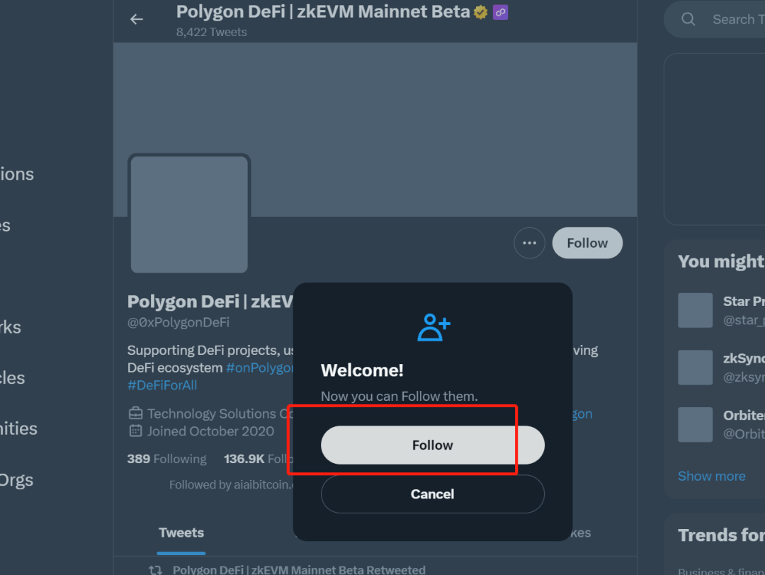 第三步关注官方推特,点击图中位置挑战推特,这两个任务是一样的,都是关注推特
